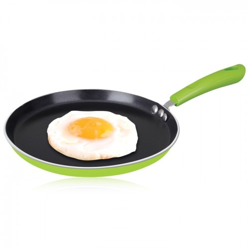- 28CM Aluminum Crepes Pan - Dia:28cm Height:1.6cm - Thickness:3.0mm - Interior coating: Black color ceramic coating - Exterior coating: Heat resistent color coating. - Induction bottom B2 - Bakelite handle